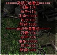 7、头盔、护腿、护甲、项链、护腕、副手属性:生命+10000,体力+100,防御+1000,命中+4%,闪避+4%