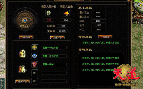 《天道》图腾系统,涵盖防爆、物伤减免穿透等多种神奇效果,当几个图腾在同一个装备***上叠加后带来惊人威力,绝对是你厮杀争霸必备之神器哦。